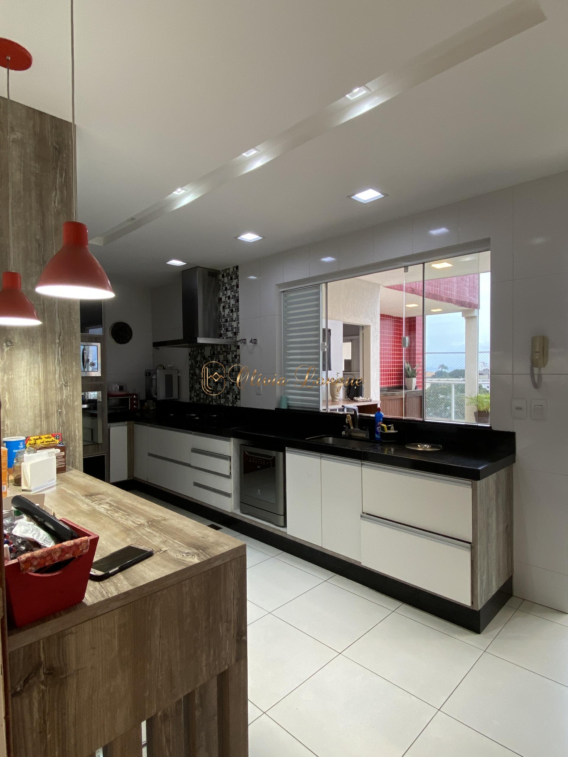 sala em dois ambientes, cozinha toda planejada, terraço amplo com piscina e chuveirão com linda vista do mar, churrasqueira e despensa, banheiro social, 3 quartos, sendo uma suíte, móveis planejados em todos os cômodos e duas vagas de garagem.